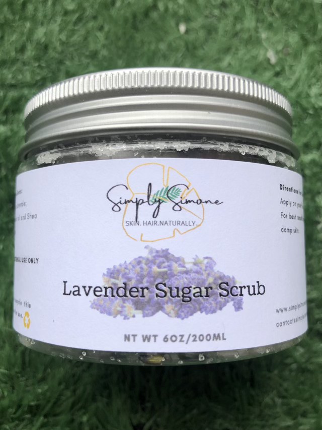 Our Lavender Sugar Scrub not only exfoliates your skin by taking away dead skin cells from your skin but also has the added benefits of  Lavender which helps to reduce redness of the skin, helps heals blotchy skin and acne and has a calming effect to your entire body and skin.